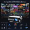 - [ Wide Compatibility ] – The projector with Wi-Fi and Bluetooth supports a wide range of devices, including USB drives, smartphones, computers, tablets, and game consoles, enabling seamless playback