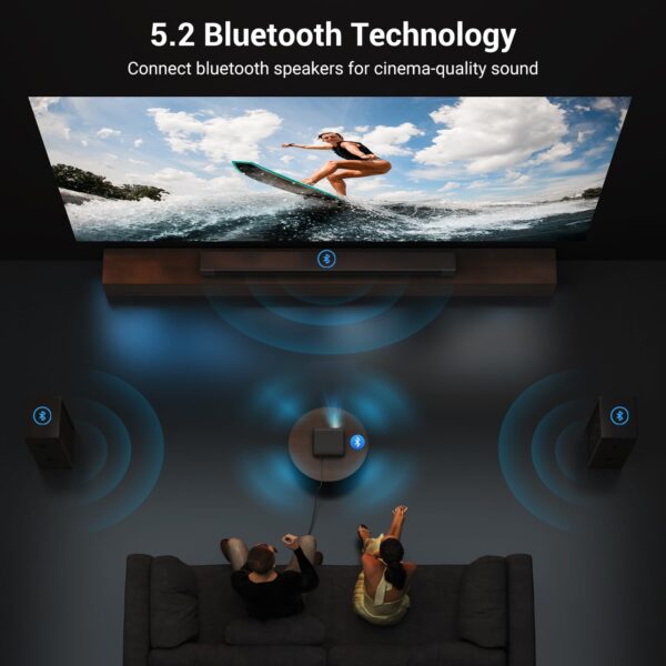 - [ 5.2 Bluetooth Technology ]-Wirelessly connect the bluetooth projector to a premium sound system for enhanced audio quality, or stream to Bluetooth headphones for a private theater experience without disturbing others.