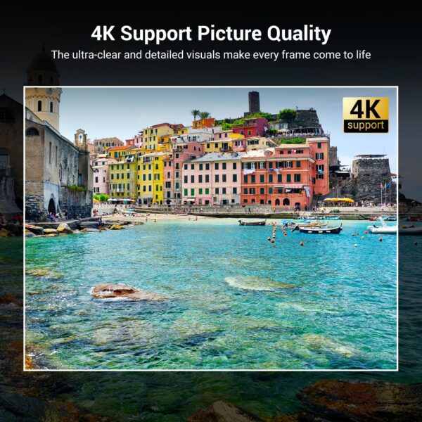 - [Visionary Picture Quality]-With 1000 ANSI lumens and native 1080P projector with 4K support, images are brighter, clearer, and more vibrant than ever. Advanced AI processing restores lifelike details—from floating pollen to crashing waves—every scene feels real and breathtaking.Enjoy a more comfortable viewing experience for you and your family with less glare and reduced eye strain.