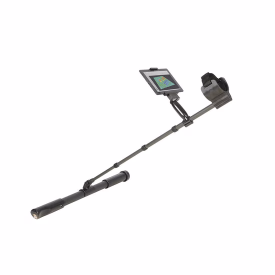 When using the detector in horizontal orientation, the probe is attached to the Telescopic Rod and the tablet is mounted above the handle. In this way, the detectorist is able to control the detector via software on the tablet very easily. Moreover, the horizontal orientation of the probe allows to record more values at once thanks to the integrated Multi-Sensor technology.