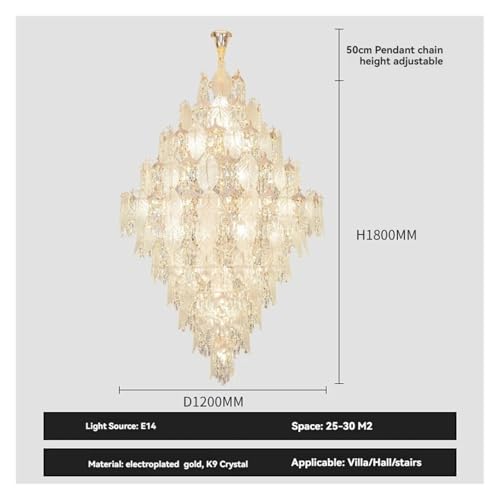Oldsix Duplex Building Crystal Chandelier Staircase Light Lobby Villa Living Room Hollow Chandelier,Modern Lighting 1(Cool White 6000k,D120x180cm)