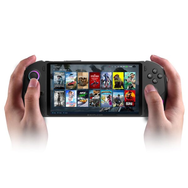 - Onexfly F1 PRO’s Screen: 7 Inches OLED screen,152% sRGB, 112% DCI-P3, 800 Nits, 16:9 Ratio, 315 ppi pixel density,DC dimming(No flicker),Refresh Rate 144Hz. 178 degree super-large viewing angle, support 10-points touch, and bring a clear and exquisite game quality experience comparable to a large-screen game book.