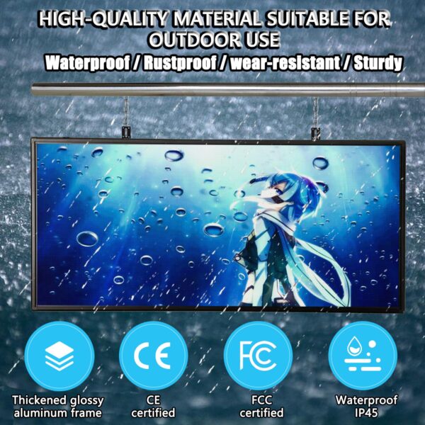 - 【Outdoor Waterproof IP45】This is an LED display specially designed for outdoor use. It can be used normally no matter it is windy or rainy, cold or hot. This LED display uses a process of first pouring waterproof silicone, then spraying a waterproof nano protective film, and then filling the splicing area with glass glue. The waterproof effect is very good.