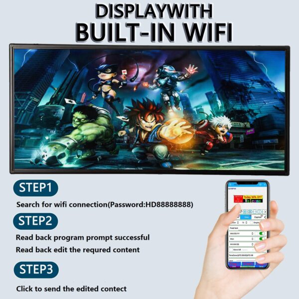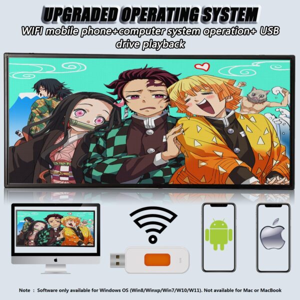 - 【Easy To Use】Programmable message by PC software save to u-disk and update through U-disk,Or sent the message by WIFI. PC software only support Windows system, can’t support Mac Os. also can program message by smart phone.Wi-fi connection by Iphone and Android APP to update the message (Just scan the code to download the app)
