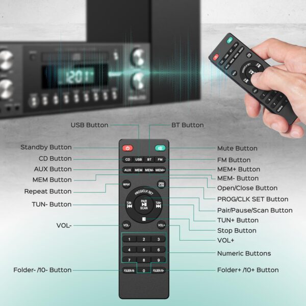 - Seamless Bluetooth Connectivity: This bookshelf stereo system functions as a bluetooth cd player for home and offers Bluetooth 5.0 connectivity, allowing you to stream your favorite tunes wirelessly. It is a bluetooth home stereo system that integrates flawlessly with your devices.