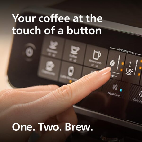 Details: With Philips 3200 Series Fully Automatic Coffee Machine discover the perfect balance of convenience and quality while enjoying the delicious taste and aroma of coffee from fresh beans at home with the perfect temperature, thanks to our intelligent brewing system. Featuring a built-in ceramic grinder, the Philips 3200 Series ensures precise and consistent grinding for optimal flavor extraction. Whether you prefer a strong espresso or a creamy cappuccino, you can personalize your coffee with just a touch thanks to the intuitive touch display. Choose from various coffee options including espresso, coffee, americano, hot water for tea or milk options like cappuccino or latte machiato with ease thanks to our LatteGo Milk System. Cleaning and maintenance is effortless with Philips 3200 Series thanks to the removable brew group allows you to clean it thoroughly just by rinsing it under the tap and the AquaClean water filter ensures up to 5,000 cups without descaling.