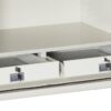 - Features commercial-grade, all-steel construction. All bolt work is steel and fastens into steel (not plastic) and prevents the door from being pried open even if the hinges are removed. The body is constructed from galvanized steel plate.