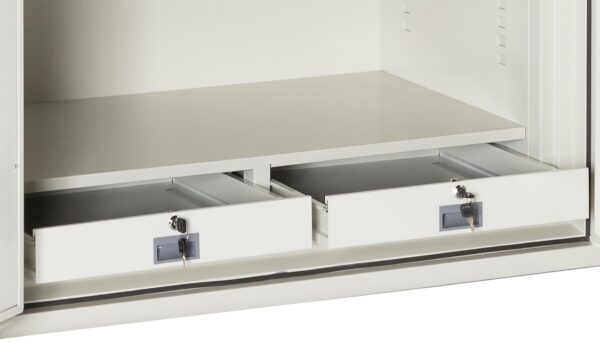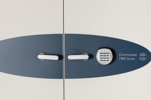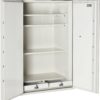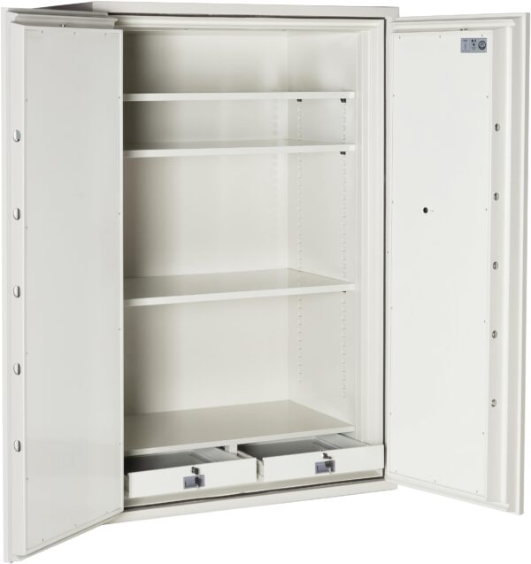 - A digital combination lock provides easy access as well as the ability to change the code as often as you like. The combination can be set with a minimum of 4 and a maximum of 16 digits. Dimensions: 66.25″H x 47.25″W x 27.5″D. Interior: 59.5″H x 37.5″W x 19.5″D. Included with safe: 3 Adjustable Shelves, 2 Fixed Drawers.