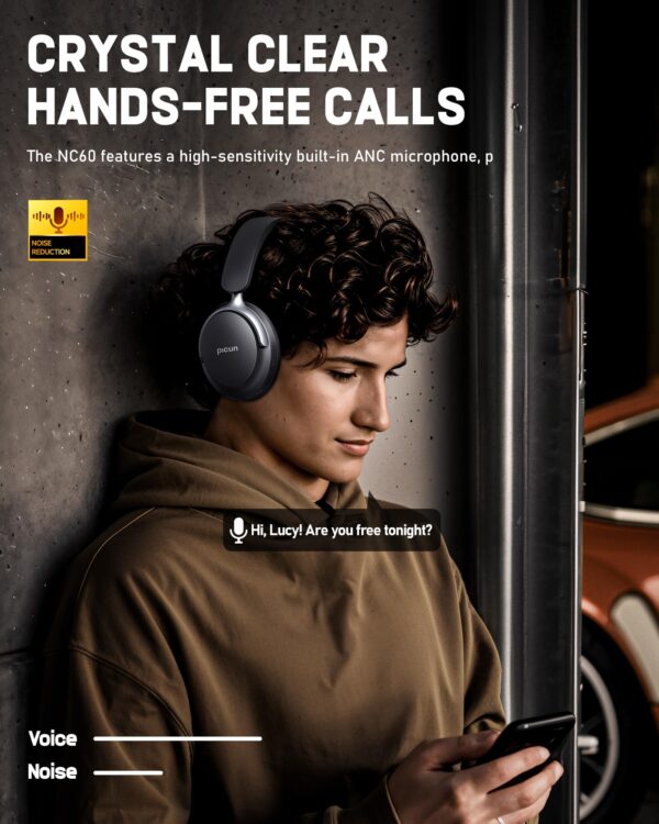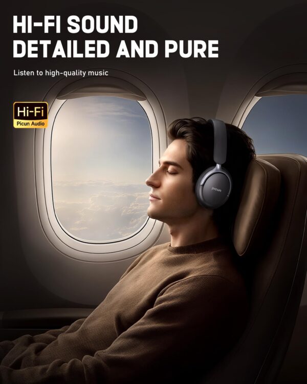 Picun NC60 Hybrid Active Noise Cancelling Headphones, Foldable Wireless Over Ear Bluetooth 5.4 Headphones, 80H Playtime, Transparency Mode, Stereo Bass, Custom EQ via App for Travel Home Black