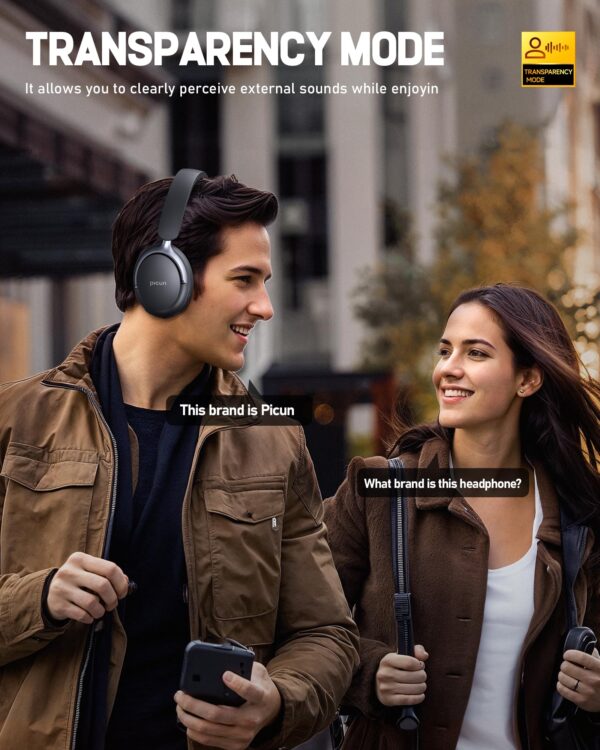 - 【Transparent Mode】Hear your surroundings clearly while enjoying music, perfect for busy streets or conversations. Stay aware without removing your headphones, keeping you connected to the world while still immersed in great sound.