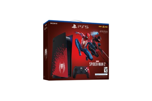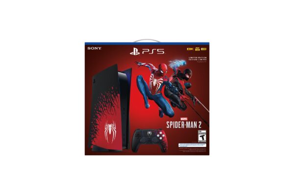 Details: The limited edition PlayStation 5 Marvel’s Spider-Man 2 console bundle includes the PS5 console and DualSense controller along with a physical copy of the highly anticipated Spider-Man 2 game for web-slinging action.