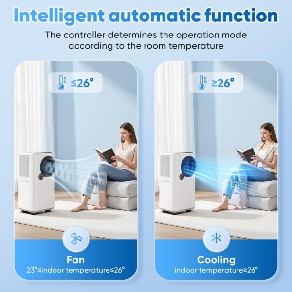 • 6-in-1 Year-Round Climate Control: More than just an AC: Switch between Cooling Mode, 3-Speed Circulation Fan, Sleep Mode, Dry Mode (dehumidifier), and Auto Mode. Combat summer heatwaves while eliminating up to 86 pints of daily humidity – ideal for damp basements and muggy kitchens. The turbo fan circulates air 30% faster than standard units for whole-room comfort.