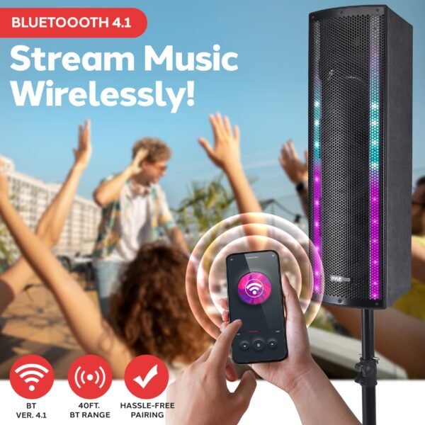 - ADJUSTABLE STAND HEIGHT: These Pyle PA wireless speakers with bluetooth are great for karaoke, stage performances, & crowd control. Comes with height-adjustable tripod stands w/ rubber pads for better stability