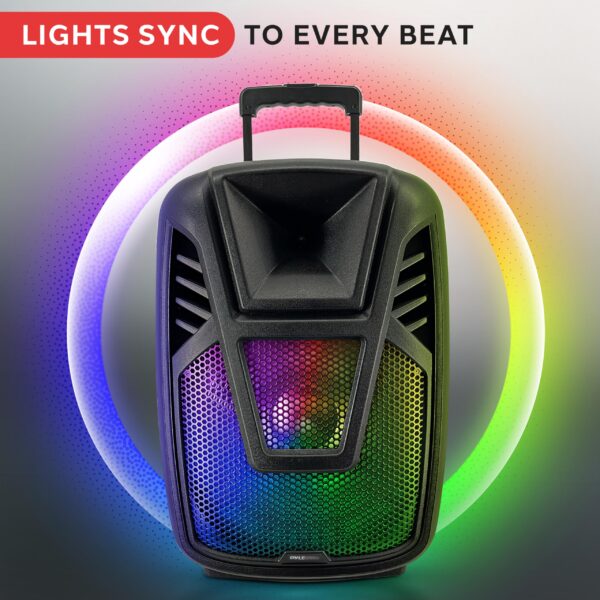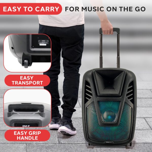 Pyle Portable Speaker – 15” 80 Watts Max Power Output Loudspeaker PA System w/ LED Light, Handles, Wheels, & Remote Control, Built-in Digital Amp and Rechargeable Battery