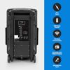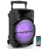 Details: Features: Portable & High-Powered Speaker System Rugged & Compact Speaker Designed for Portability Bluetooth Wireless Music Streaming Ability Multi-Color Flashing LED Party Lights Flashing LED Lights Bounce & Pulse to the Music Beat FM Radio with Digital Display Built-in Rechargeable Battery Recording Function Microphone Priority ‘Talk-Over’ Button Connect & Stream Audio from External Devices USB Flash Reader & Micro SD Card Reader MP3 Digital Audio File Support Aux (3.5mm) Input 1/4’’ -inch Microphone Input Rear Panel Button Control Center Mic Volume, Treble, Bass, Echo Adjustment Telescoping Handle & Rolling Caster Wheels For Indoor / Outdoor Use *Optional Power via DC 12V Input