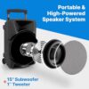 - 15” SUBWOOFER 1” TWEETER: This compact but powerful portable PA stereo speaker kit is equipped with 15” subwoofers, high performance 1” tweeters, mic and compression driver w/ FM radio and digital display