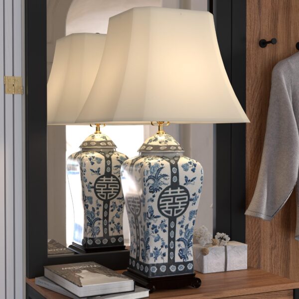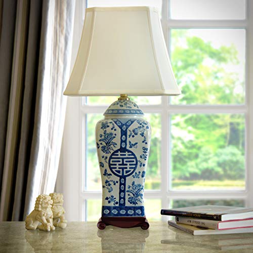 Red Lantern 26″ Floral Blue & White Vase Lamp