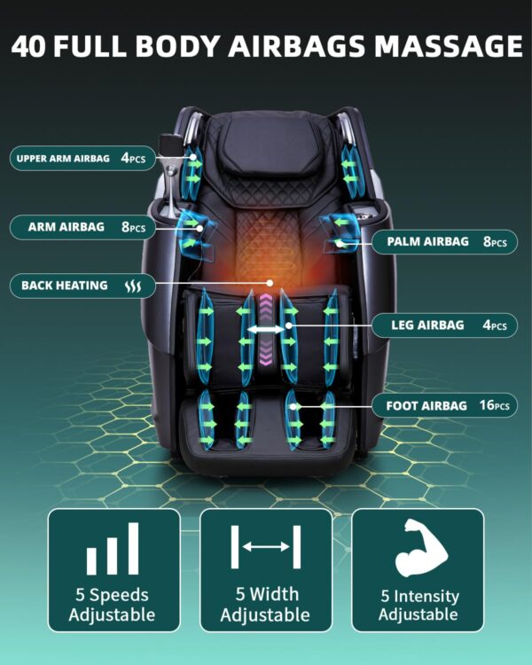 - 【Professional Massage Techniques】:11 different professional massage techniques combined with 40 air bags on the shiatsu massage chair can meet different preferences and provide adequate relaxation. At the same time, the bluetooth speaker and wireless charging function allow you to have an immersive massage experience and convenient use.