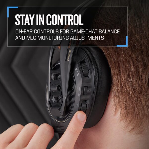 - STAY IN CONTROL: On-ear controls for volume, game/chat audio balance and mic monitoring (sidetone) let you adjust on the fly.