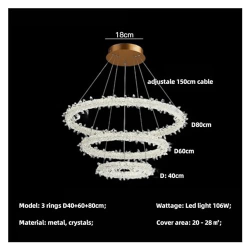 RJYYYDS PendantLight, Post Art Deco Led Dimmable Pendant Lights Luxurious K9 Crystals Circle Pendant Lamp Parlor Hanging Lamp Led Luminarias,One Color-3 Ring 40 60 80cm