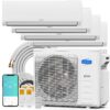 - ❄️ 100% Satisfaction: Pre-charged up to 25 feet System comes with 4 indoor units, 1 outdoor unit, 4 remote controls and 4 line set in 25ft. Please remain upright for 24 hours before installation. Professional licensed HVAC technician installation recommended for optimal performance and safety (extra power cord is needed). Please schedule installation after receiving both 9 seperate boxes (delivery-time may vary)