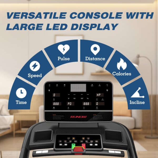 RUNOW Treadmill for Home – Incline Treadmill with 15% Auto Incline, Folding, 36 Preset Programs, Commercial Grade, 5.0HP, 450 LB User Capacity