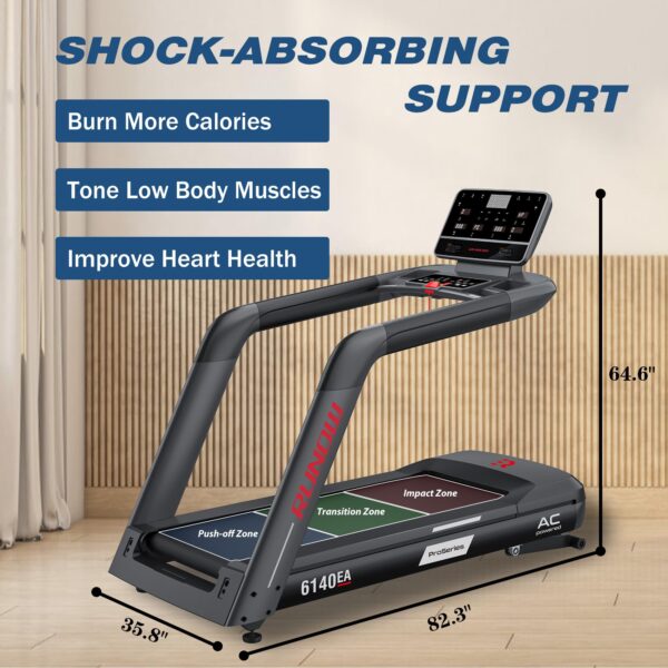 - 【High Weight Capacity of 450 LBS】Our treadmill features a spacious running deck crafted from durable, high-density Alloy Steel, complemented by 8 built-in shock-absorbing cushions and a generous 61” x 23” running surface. With an extended running path and a comfortable air-cushioned deck, it effectively absorbs shock even at higher speeds, replicating the outdoor running experience. Suitable for all family members, this treadmill provides a supportive and comfortable workout platform.