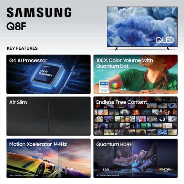 *****Compared to Quantum HDR. 32” Q8F has Quantum HDR.
