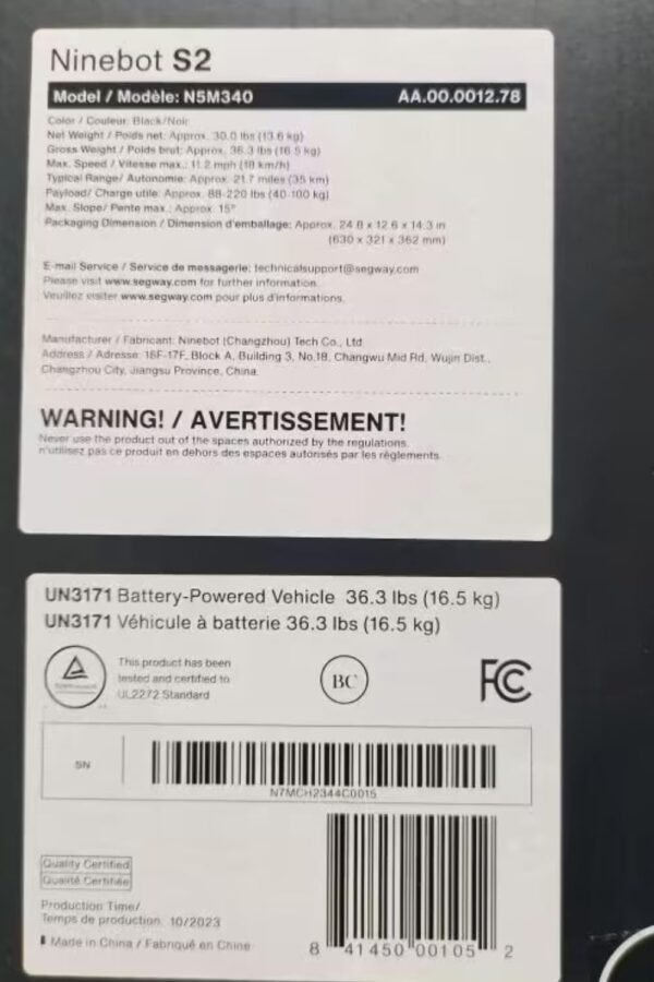 - SAFE & RELIABLE: Ride with peace of mind knowing that the Segway S2 is UL-2272 certified, meeting stringent safety standards for worry-free riding.