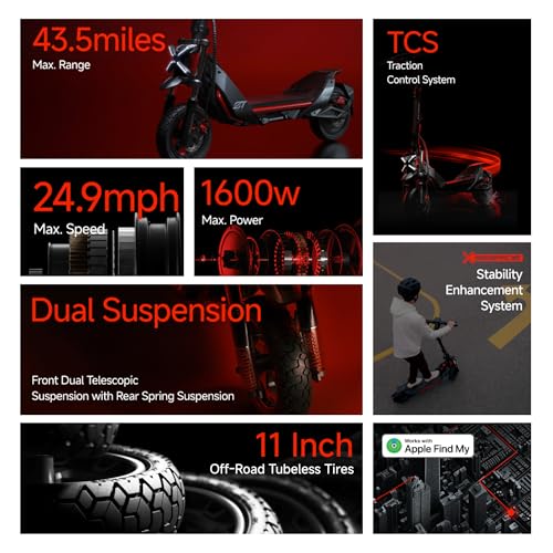 1. powerful performance high-speed motor: equipped with a 650w nominal power motor (peaking at 1600w), the zt3 pro delivers a top speed of 24.9 mph (40 km/h), ensuring a smooth and exhilarating ride. long range: with a 597wh battery, the zt3 pro offers an impressive range of 43.5 miles (70 km) in eco mode, making it perfect for long commutes or extended rides. in sport mode, the range is 18.6 miles (30 km) for high-speed performance. off-road capability: featuring 11-inch off-road tubeless tires and a dual suspension system (front telescopic and rear spring), the zt3 pro handles rough terrains with ease, providing a comfortable and stable ride. 2. smart and safe riding traction control system (tcs): ensures stability and control on slippery or uneven surfaces, giving you confidence in every ride. cruise control: maintain a constant speed effortlessly by enabling cruise control when riding at speeds above 3.1 mph (5 km/h). hill-hold assist: prevents the scooter from rolling backward on inclines, making uphill starts safer and easier. energy recovery system: reclaim energy while braking or coasting, enhancing efficiency and extending your ride. 3. advanced safety features dual disc brakes + electronic brake: provides reliable stopping power with front and rear disc brakes, complemented by an electronic brake for added safety. ipx5 water resistance: built to withstand splashes and light rain, ensuring durability in various weather conditions. abnormal movement alert: detects unauthorized movement when the scooter is powered off, triggering an alarm and locking the wheels to prevent theft. 4. smart connectivity segway-ninebot app: customize your ride with features like speed modes, locking functions, and scheduled charging. monitor battery life, track your ride statistics, and more. apple find my integration: keep track of your scooter’s location using the apple find my network, ensuring peace of mind wherever you go. digital & pattern codelock: secure your scooter with a customizable digital or pattern-based lock, accessible via the app or handlebar controls. 5. comfort and convenience adjustable handlebar height: designed for riders between 5’3″ to 6’7″ (160-200 cm), the zt3 pro ensures a comfortable riding position for users of all heights. led dashboard: stay informed with a clear display showing speed, battery level, and riding mode. foldable design: easily fold and carry the scooter with its compact design, making it perfect for storage or transport. 6. durable build high-capacity battery: the 46.8v, 12.75ah battery is protected by a battery management system (bms) that safeguards against overcharging, overheating, and short circuits. robust frame: built to support a maximum payload of 265 lbs (120 kg), the zt3 pro is sturdy enough for most riders and their gear.