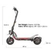 max speed: 24.9 mph (40 km/h) range: up to 43.5 miles (70 km) in eco mode at 9.3 mph motor: 650w nominal, 1600w max battery: 597wh, 46.8v, 12.75ah charging time: approx. 4 hours tires: 11-inch off-road tubeless tires suspension: front dual telescopic, rear spring brakes: front and rear disc brakes + electronic brake weight: 65.5 lbs (29.7 kg) payload capacity: 265 lbs (120 kg)