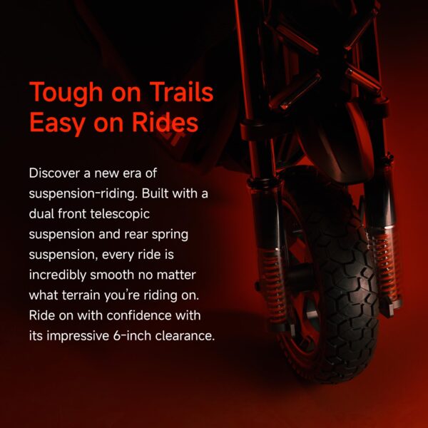 - Smooth Ride: Dual front telescopic and rear spring suspension provide a cushioned ride on all terrains.