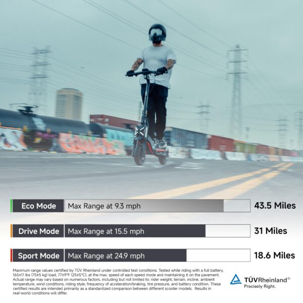 - Extended Battery Life: Travel up to 43.5 miles on a single charge in ECO mode, ensuring long, uninterrupted rides with minimal recharging required.