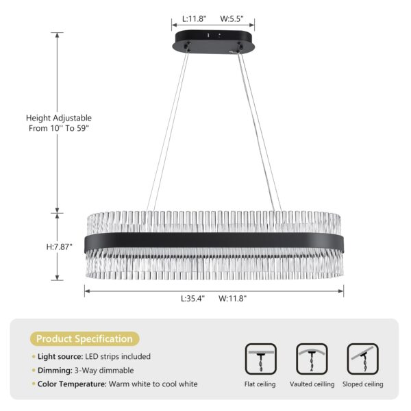 - 【CLASSICAL CHANDLIER SHAPED】: The contemporary ceiling pendant light fixture size: L35.4″ x W11.8″ x H7.9″, Hanging board size: L11.8″xW5.5″
