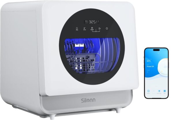 Silonn Portable Countertop Dishwasher with App Control, Mini Dishwasher with 5L Water Tank for Apartments/RVs No Hookup Needed, Dish washer with 8 Wash Programs 4 Place Settings Auto Air Dry