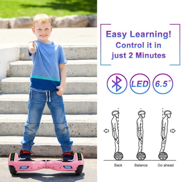 SISIGAD Hoverboard for Kids Ages 6-12, with Built-in Bluetooth Speaker and 6.5″ Colorful Lights Wheels, Safety Certified Self Balancing Scooter Gift for Kids
