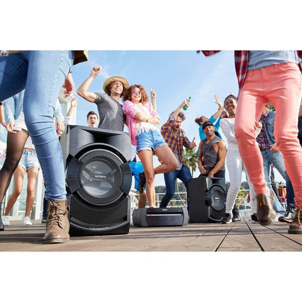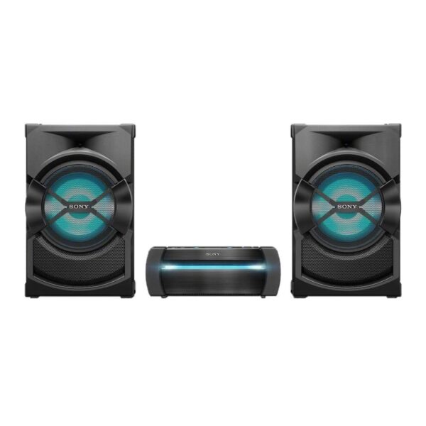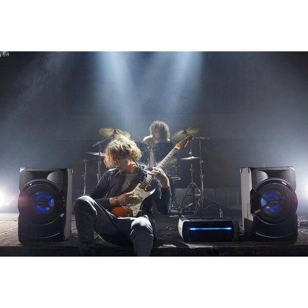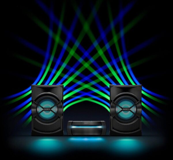 Details: Get the house party started with the Sony high-power home audio system with Bluetooth. For bass you can feel, This speaker system is equipped with a sound pressure horn designed to deliver powerful, thumping bass. More effective than traditional, energy-wasting amplifiers and signal processing, the internal folded design of the sound pressure horn makes you feel the difference. High quality wireless streaming experience Wireless Bluetooth streaming unlike ever before with the Sony high-power home audio system. Sony lad audio technology lets you to experience the rich clarity of high-quality wireless sound via Bluetooth. With up to three times the data transmitted, lad technology enhances your wireless listening experience for all your music. Led speaker lights incorporated into the design of the Sony high-power home audio system are LED speaker lights that simulate a club atmosphere. Create your own party atmosphere complete with a spectrum of various color patterns, ranging from pure white to Rainbow. The power and speed of the light display matches the musical mood and atmosphere-syncing perfectly with the rhythm of the beat! Guitar input be the star of the show at your own mini concert thanks the speaker system’s guitar input. Simply plug in your cable and press the dedicated guitar key and enjoy powerful sound output. You can play solo style or connect a microphone to sing along. Karaoke sing along with the Sony high-power home audio system, there’s no need to head down to the karaoke bar to sing like a star. You can hold you own karaoke competitions with friends right in the comforts of your own home. Easy to set up, just hook the Sony high-power audio system up to a TV, pop in a karaoke DVD, and sing along to the words on the screen.