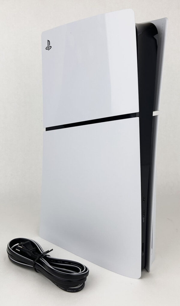 The Sony PS5 Slim Disc Edition is a slimmer and smaller version of the original PlayStation 5 console that includes a disc drive for playing physical games and 4K UHD Blu-ray discs. It features the same high-performance specifications as the original PS5, such as an ultra-high-speed SSD, ray tracing, and Tempest 3D AudioTech, but in a more compact design with 1 TB of storage.