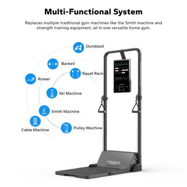 - Multifunctional Smart Home Gym: Speediance is revolutionizing the way you work out by delivering all the benefits of the gym straight to your home. Our state-of-the-art machine combines cardio and strength training so you can achieve a full-body workout without leaving your living room.