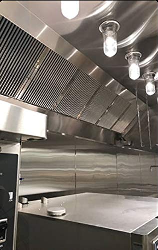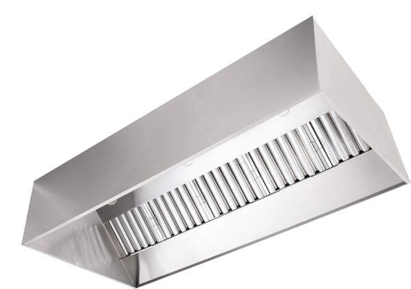 • Hood Specifications- 430 Stainless Steel Construction (Where Exposed), 48″ depth provides better capture and containment of cooking vapors at lower airflow volumes. 600 degree hood rating – allows use with medium to heavy duty cooking equipment providing ultimate flexibility. Stainless Steel Baffle Hood Filters with Handles and Bottom Hanging Hook. High Temp Light Fixtures. Factory installed 12″ round exhaust riser.