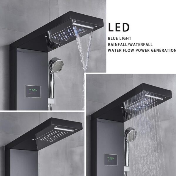 - 【Five Function Water Outlet】Waterfall Shower LED/Rainfall Shower LED/Handheld Shower/Massage Jets Settings/Tub Spout/Shower water