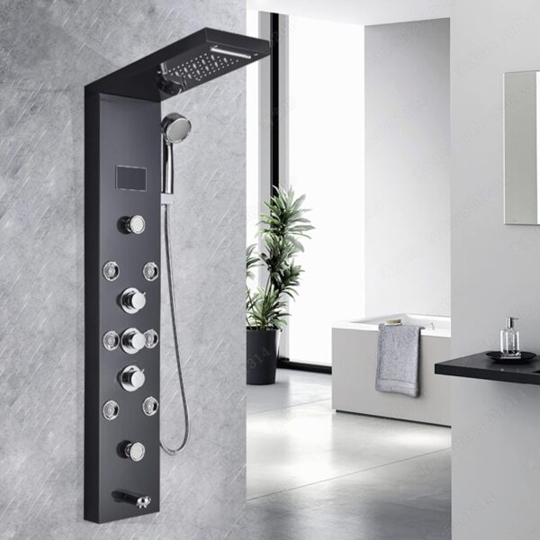 Stainless Steel LED Bathroom Wall Shower Set Rain Waterfall Shower Head 5 Function Faucet Shower Panels,All in 1 Shower Column,for Hotel (Black) (Silver)