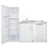 Details: Summit Appliance ACKDW721G 72″ Wide All-in-one Kitchenette with Full-sized Frost-free Refrigerator-Freezer, 24″ Dishwasher, Two Burners Radiant 115V, Storage Cabinet, Sink and Faucet