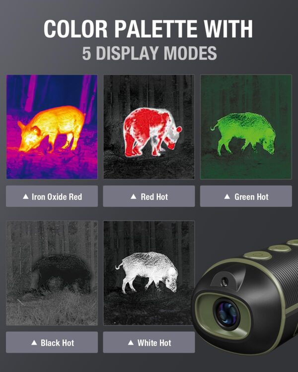 - [5 Display Modes] Teslong night vision monocular comes with different color modes including White Hot, Black Hot, Red Hot, Green Hot, Iron Oxide Hot, making it versatile and suitable for various scenarios such as hunting, law enforcement, and search and rescue operations