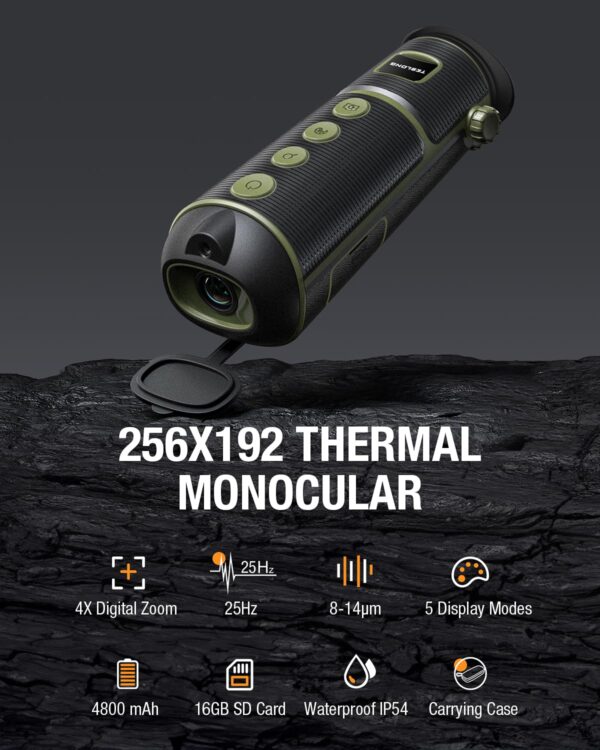 - [256×192 Thermal Monocular] Get clear thermal imaging for hunting with Teslong’s thermal monocular. Featuring a 256×192 thermal vision sensor and 720×540 LCOS display on the thermal monocular for hunting