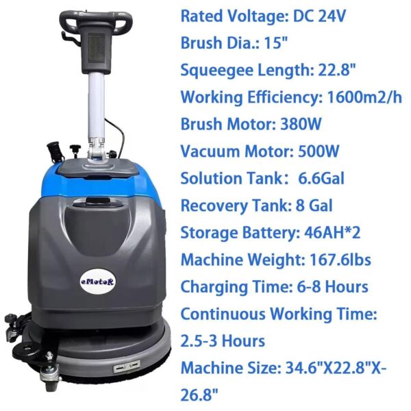 - 👍[Powerful in Use] 500W water suction motor and 380W brush motor, you can clean the dirty floor easily. This floor scrubber machine is suitable for hardwood floors such as mirror tile floor, marble floor, epoxy floor, PVC floor, emery floor, terrazzo floor, concrete floor etc.