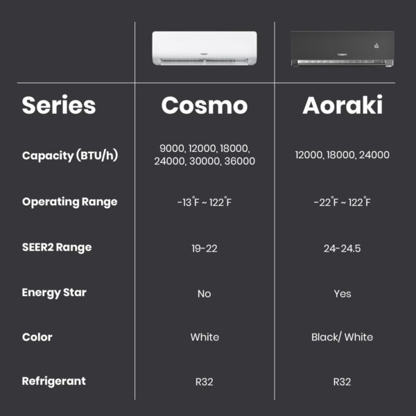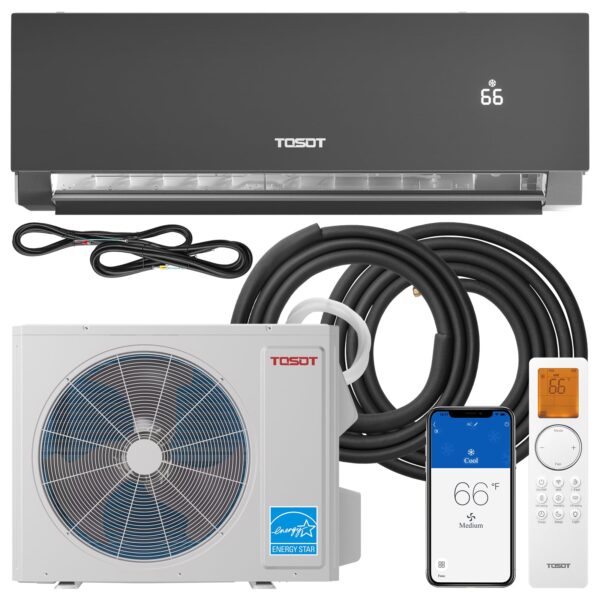 TOSOT 18,000 BTU 24.5 SEER2, ENERGY STAR Mini-Split Air Conditioner and Heating System, Wifi-Enabled Ductless Inverter AC Unit, Supports ERV System Add-On, 208-230V, Aoraki Series, Black