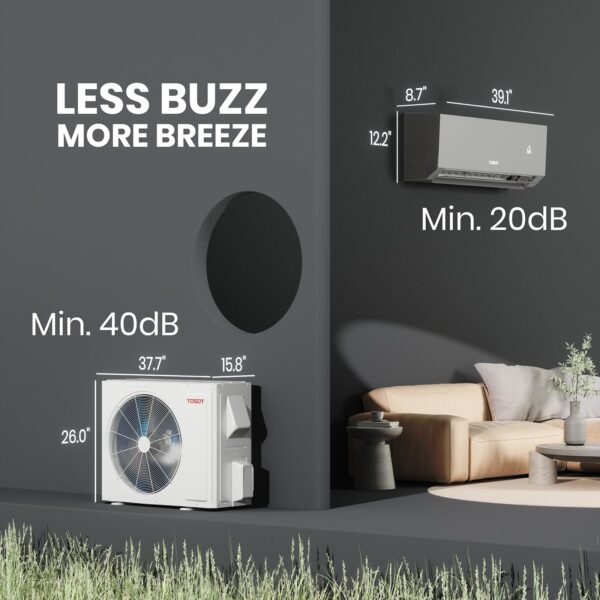- Ultra-Quiet Operation: With an indoor noise level as low as 19dB, enjoy a serene indoor environment for relaxation, concentration work, and uninterrupted sleep; night mode reduces outdoor unit noise to a quiet 40dB for a peaceful neighborhood