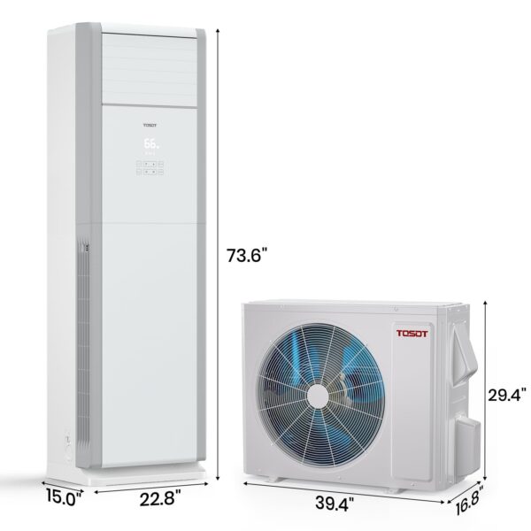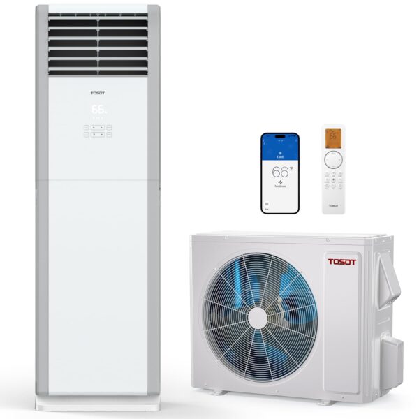 TOSOT 34,000 BTU Floor Standing Split Air Conditioner, Up to 1,150 CFM Airflow, 230V, Cooling and Heating, Built-In WiFi Control, Energy-Saving for Light Commercial & Residential Use, Cosmo Series