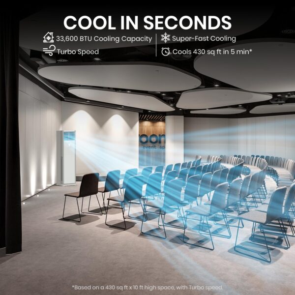 - High Airflow for Large Spaces: Provides 880-1,150 CFM airflow, much higher than standard wall-mounted AC units; adjustable air deflectors deliver air in multiple directions; reaches up to 50 ft, great for large rooms and light commercial use